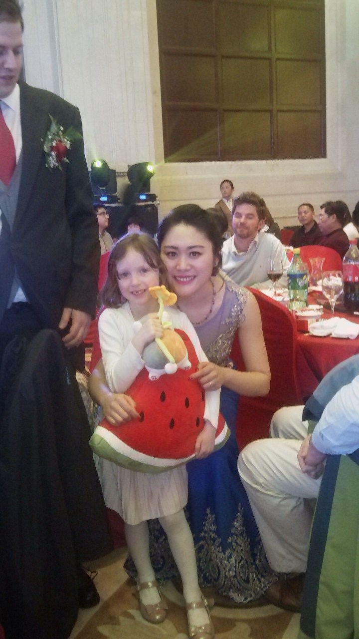And then the afternoon became just a touch crazy. Sophie and Eleanor got up on stage (invited) and each sang a Chinese song. Then they sang Let It Go, from Frozen. Unrehearsed they did well, but neither, at the moment, is a duet singer. After the musical interlude, the MC produced cuddly toys and they were flung out from the catwalk for people to catch. Eleanor and Sophie collected a lot of toys, but if this was a direct correlation to the women lining up to catch the bouquet then it had the jostling and elbowing, but the meaning was lost on me.