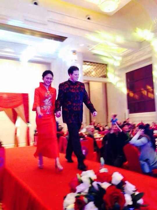 Happily we arrived safely. Jake and Barbara have been married since December, but had chosen the 4th April to have the party. We found our seats in the ballroom of the hotel, seated around round tables with a lazy Susan in the middle. The ballroom had a stage and coming from the stage was something ressembling a catwalk covered in red carpet. The seats and tables where covered in red too, the lucky colour for this nation.