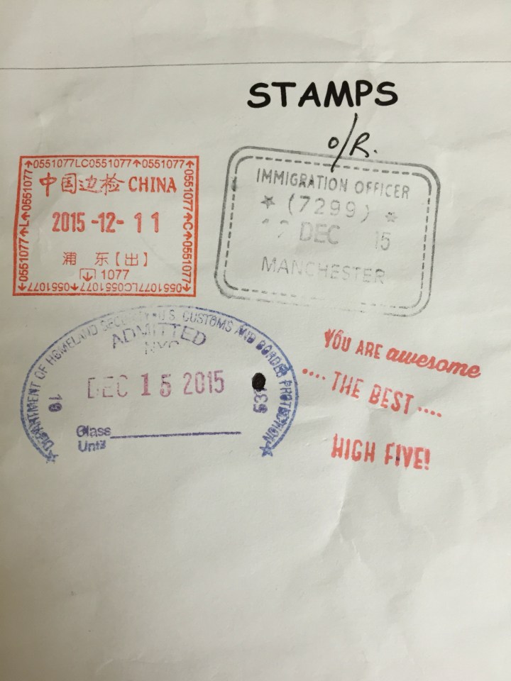 Immigration completed including a stamp for our resident Christmas Elf