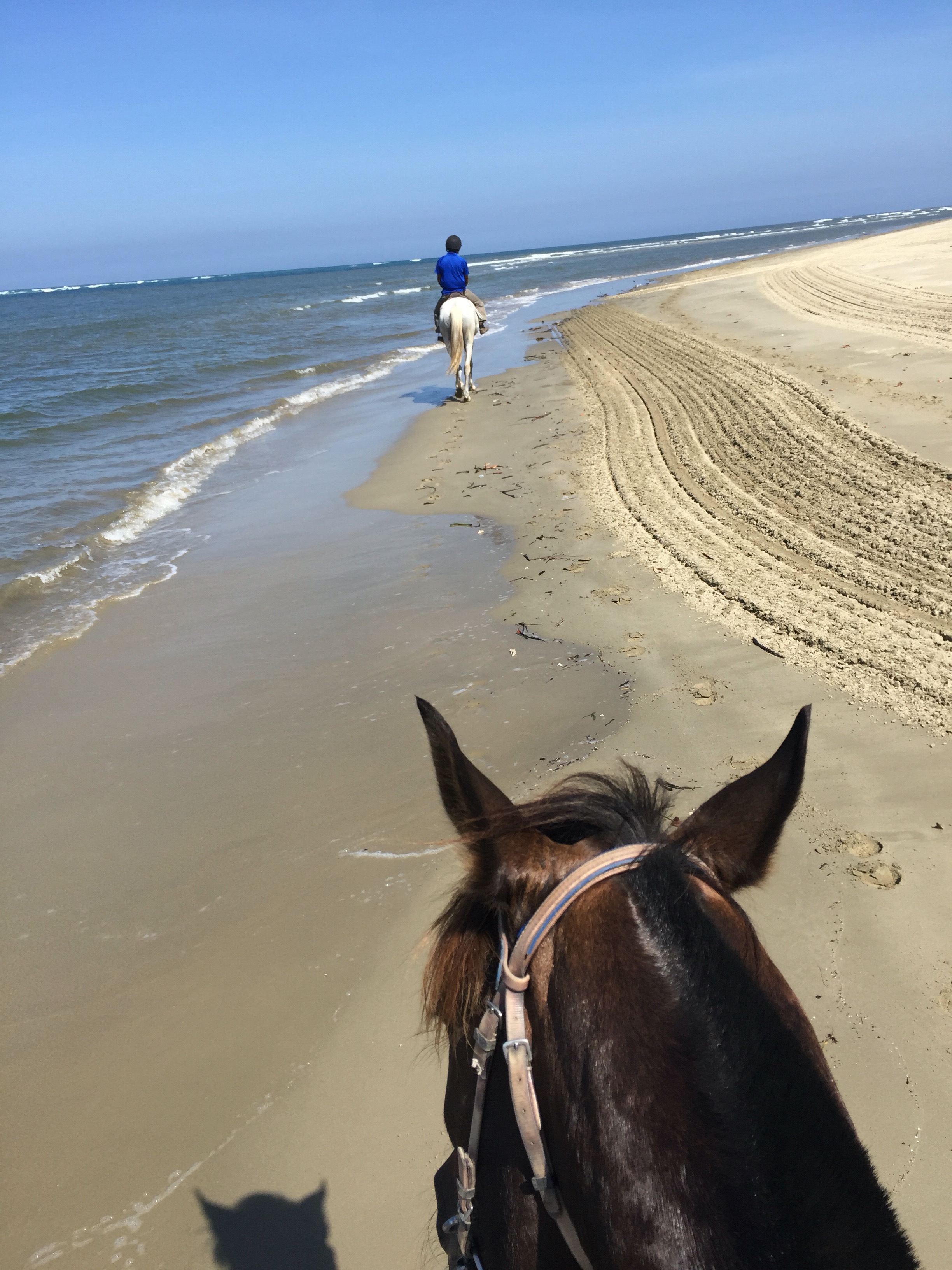 Our ride along the beach was exhilarating and beautiful. Rocky was headstrong but cantering through the waves was great.