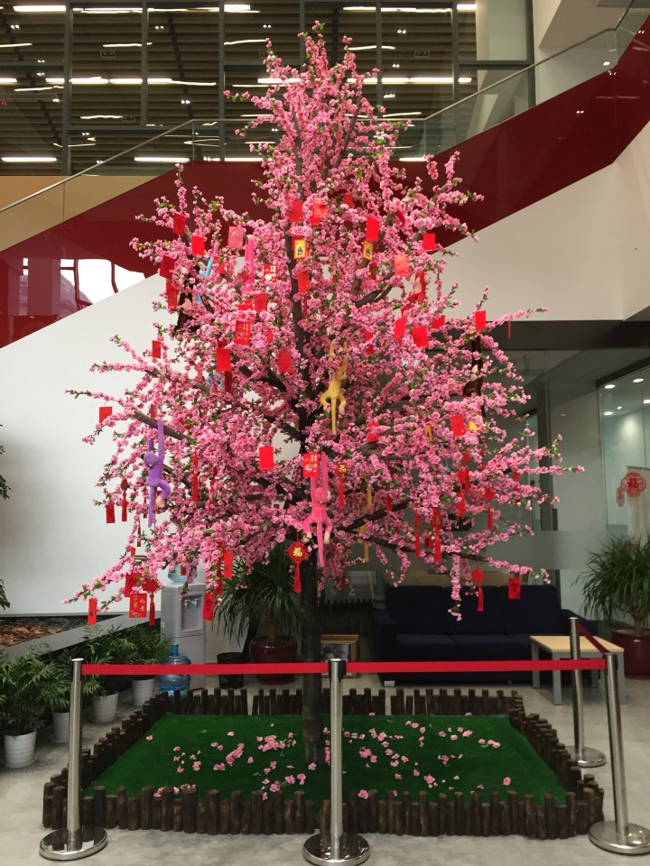 Our school and Eleanor’s was also decorated with cherry tree blossom bedecked with red pockets and monkeys