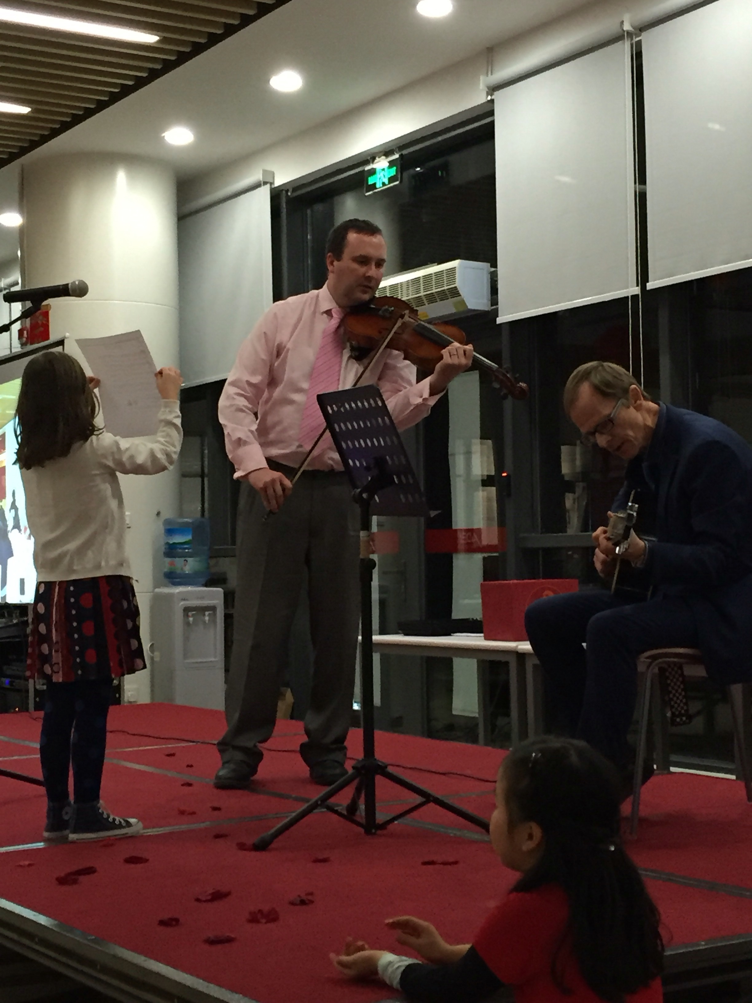 During the last week of school Martin and I, along with all the other tutors in school had lunch with our tutor groups. A pre cursor to the lunches/dinners our students would be sharing at home over the Chinese New Year festival when families travel to be together. We also had our staff party which was held in our school canteen. It was a lovely affair with good food, and not the usual school lunches we are now used to. There was entertainment from the Chinese staff, and expat staff! Martin and his colleague Steve played viola and guitar together in a surprise performance (Martin didn’t tell me he was playing!) and Eleanor and her friends of other staff members also took to the stage/hijacked the microphones and sang Chinese songs they had learnt at school.