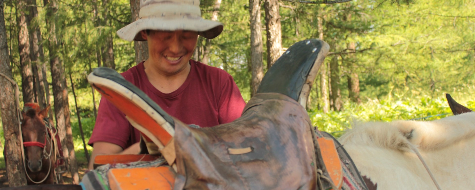 When anyone falls of a horse or bicycle the saying is of course “get right back on”. Eleanor having fallen off in June and being told not to get back on for at least a month, couldn’t get back in the saddle immediately. So with a lot of persuasion Eleanor did get back in the saddle. To be fair she didn’t want to walk almost 2 hours to another monastry… so Eleanor and I paid 20,000MNT for two horses. Khulan also went with us. The Dutch family walked (and got lost for a time). Astrid commented that when surrounded by forest she completely lost her bearings, and whilst trying to keep a brave face for the three children, she was actually quite scared. Thankfully one of the children shouted for Khulan and they were found. Eleanor and I meanwhile were experiencing saddles that were making me think that you have to be careful of getting back in the right saddle – not just any saddle.