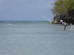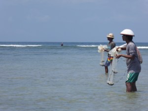 Brightly coloured fishing boats on the sand and in the sea was a lovely backdrop. Undercover we entered a large barn with a low ceiling full of tables laden with fish and shell-fish, the mornings haul. Small sharks, long barracuda, red snapper, squid and lots more besides this was an amazing sight. Led by Chef Benny we weren’t hassled allowing us to take the sights (and smells) in. The market was not just for traders or the fishermen, but families were here all selling the fish, or gutting them and young children played behind the stalls or where nursed/fed while one of their family was preparing the fish.