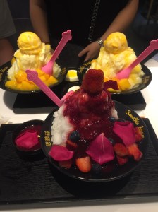 After main course and dessert dumplings we then had more dessert! We went to Smoothie House – another popular haunt. We had mango ice and one with berries. 3 ice creams for 5 people. We could easily have eaten 2. 3 was too much!
