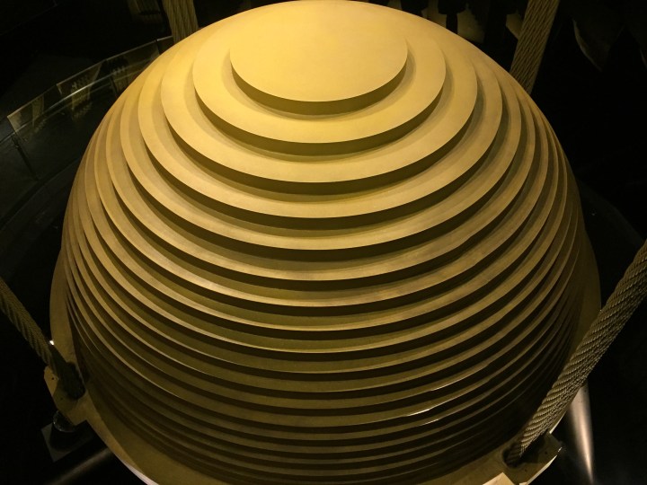 However, the tower is also the home to the only dampener that is on display for the paying public to see. Since Taipei is prone to heavy duty storms its dampener will minimise the sway in high winds.