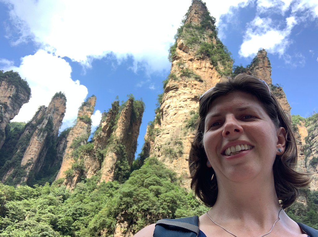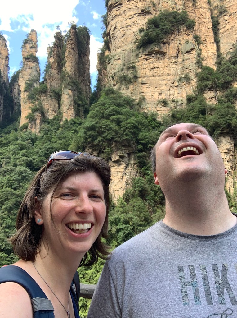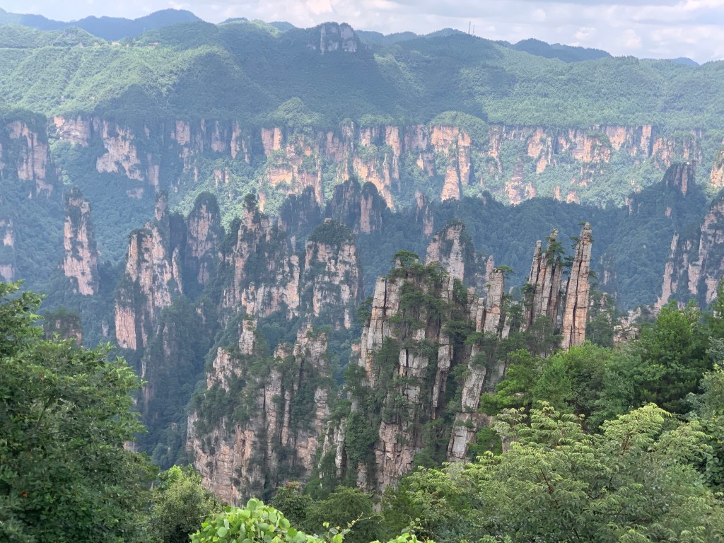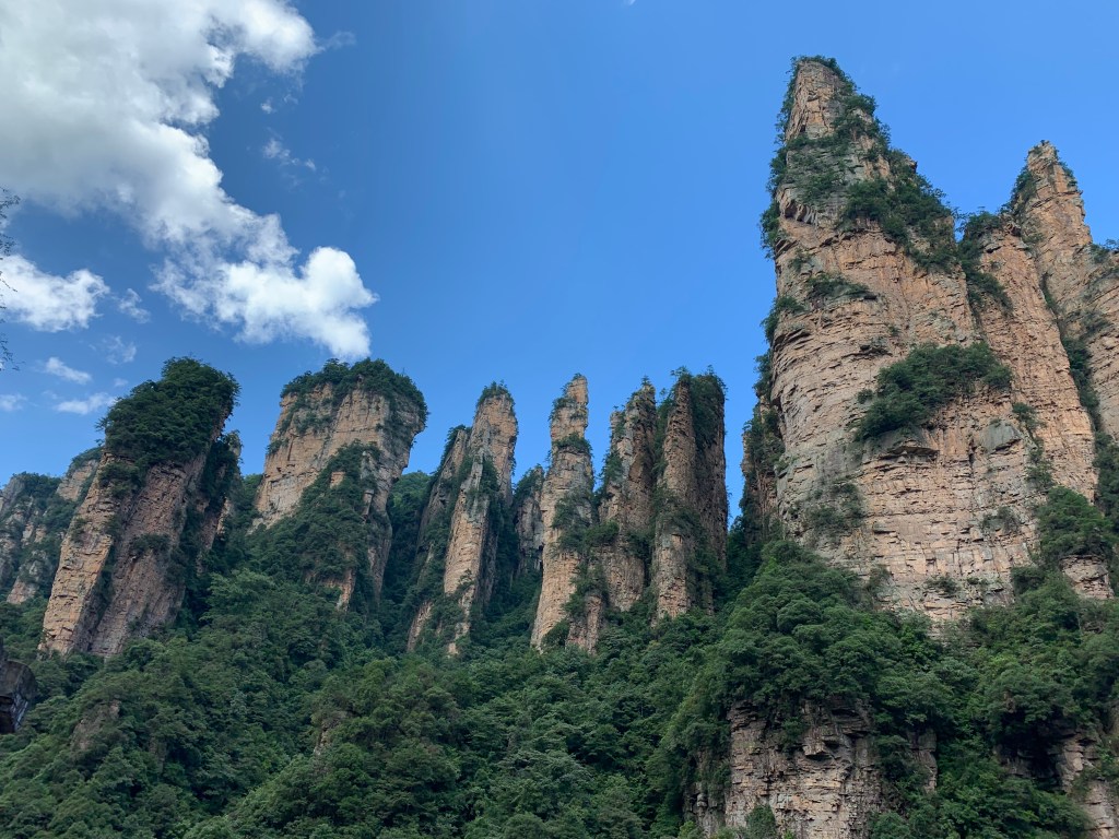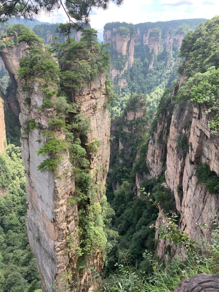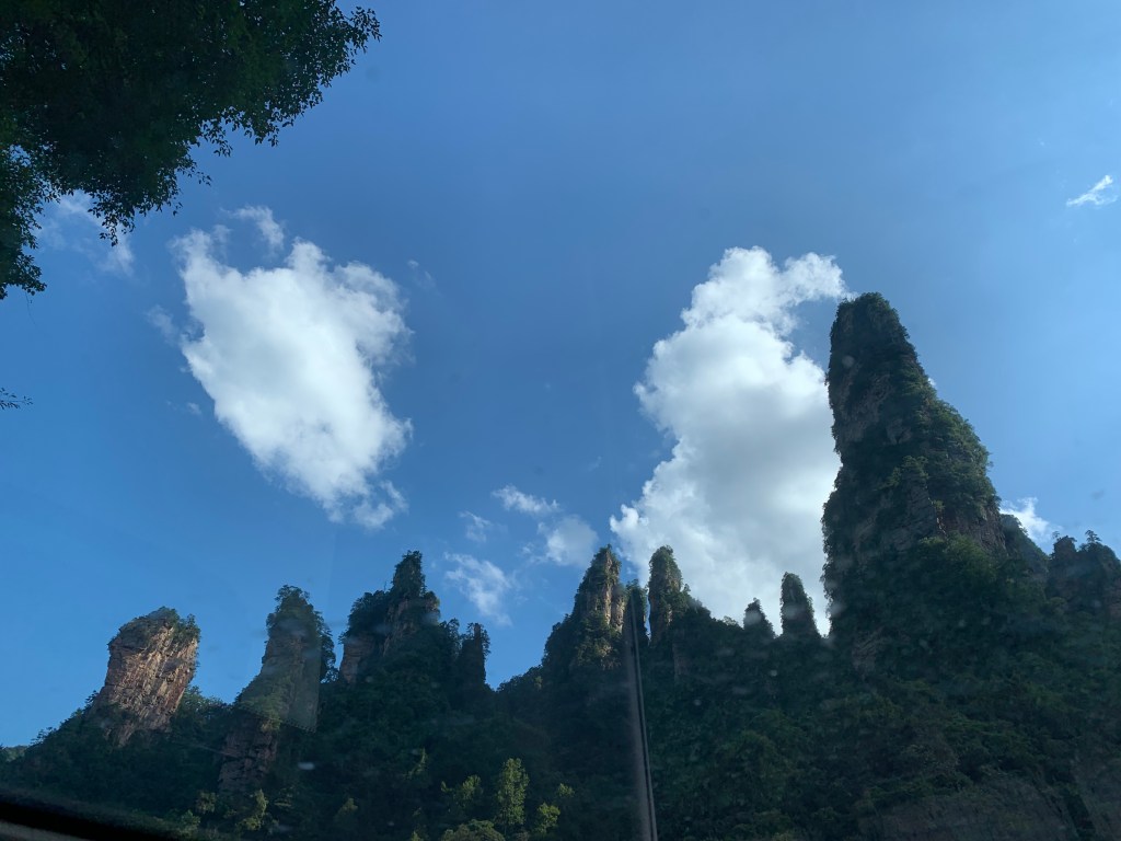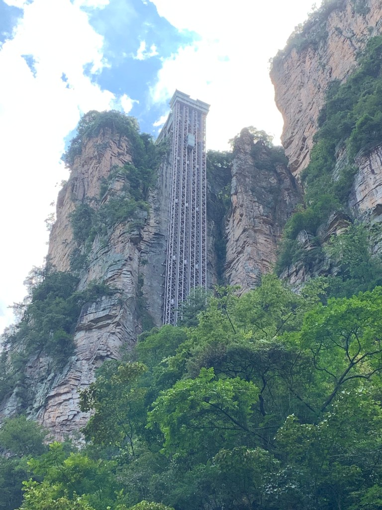 The “great glass elevator” or Bailong Elevators (Hundred Dragons Elevator) are three double decker lifts and are believed to be the world’s tallest outdoor lifts at 1070ft (326m). It takes 90 seconds and again thanks to our guide we took the lift down, not up. We saw more of the sandstone pillars that rise way above the forest canopy, but as I was buried somewhere deep in the lift, my view was obscured. All I had to do though was look up and I could still see the pillars. It is an amazing engineering feat. However you do wonder, well I did anyway, as it is a zone of natural beauty and is UNESCO protected how did did they get permission to build it?