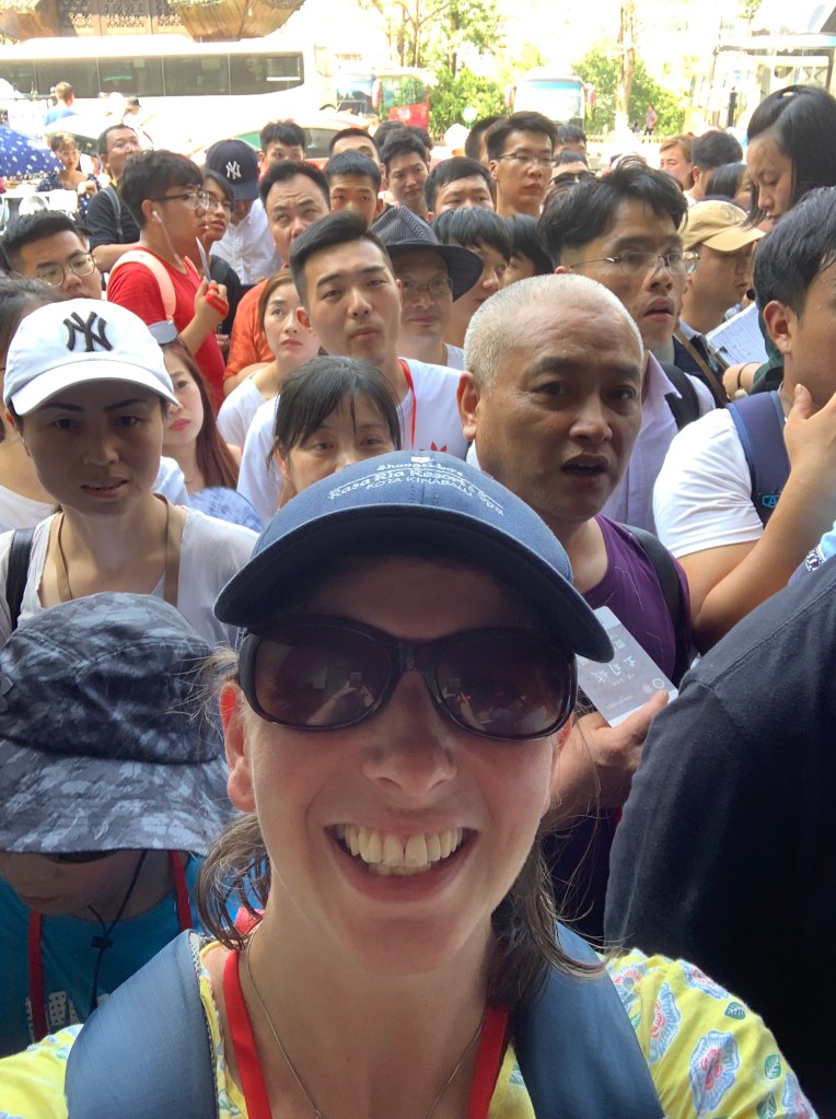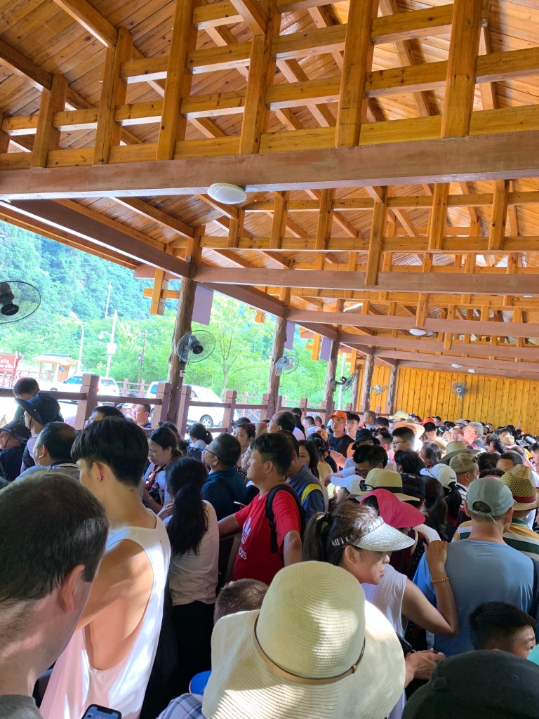 The buses wound their way across the mountains, Martin and I felt that if we had not been with a guide we probably would have been on a bus somewhere not knowing where we were going. The Chinese tourist industry for the Chinese is still a relatively new thing, and when a country holidays together (for instance Chinese New Year, National Day in October, Qing Ming in April and Dragon Boat festival in June) then there needs to be the mechanisms put in place for the mass movement of people swiftly and easily. Buses are an easy way to do this it gets people from sightseeing spot A to sightseeing spot B without family arguments of “is this the right way”. Of course if you can speak and read Chinese the next questions of “are we on the right bus or where does the bus go” disappear. The guide however moved us from bus to bus effortlessly. And in 24/25°C heat, it was cooler than Suzhou’s 35-38°C plus, but it was nice to be on air conditioned buses. Though some of the queues especially at the end of the day tested patience.