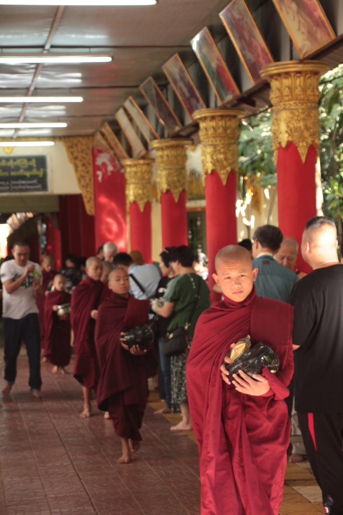 That day we were also taken to what can only be termed as a glorified marquee for lunch. A place were tour groups alongside locals chose from all sorts of curries from a top table. Once the curry had sold out it was gone for that day and a replacement curry was given. Vegetable, prawn, chicken and goat curries appeared as did a bowl of rice. The place was hiving with activity and with cacophonous conversations happening all around us the only thing we wanted to do was eat! It was a far cry from the monastery that we had visited in the morning where we had witnessed lunch being served by volunteers to the monks and nuns. We were told that on most occasions companies would sponsor lunch and volunteers would serve it. I was hestitant to take photos of this, but was assured it was fine. Many of the monks and nuns are children and with food being served every day, it is probably reassuring to their families to ensure their children are being nourished both spiritually and physically.