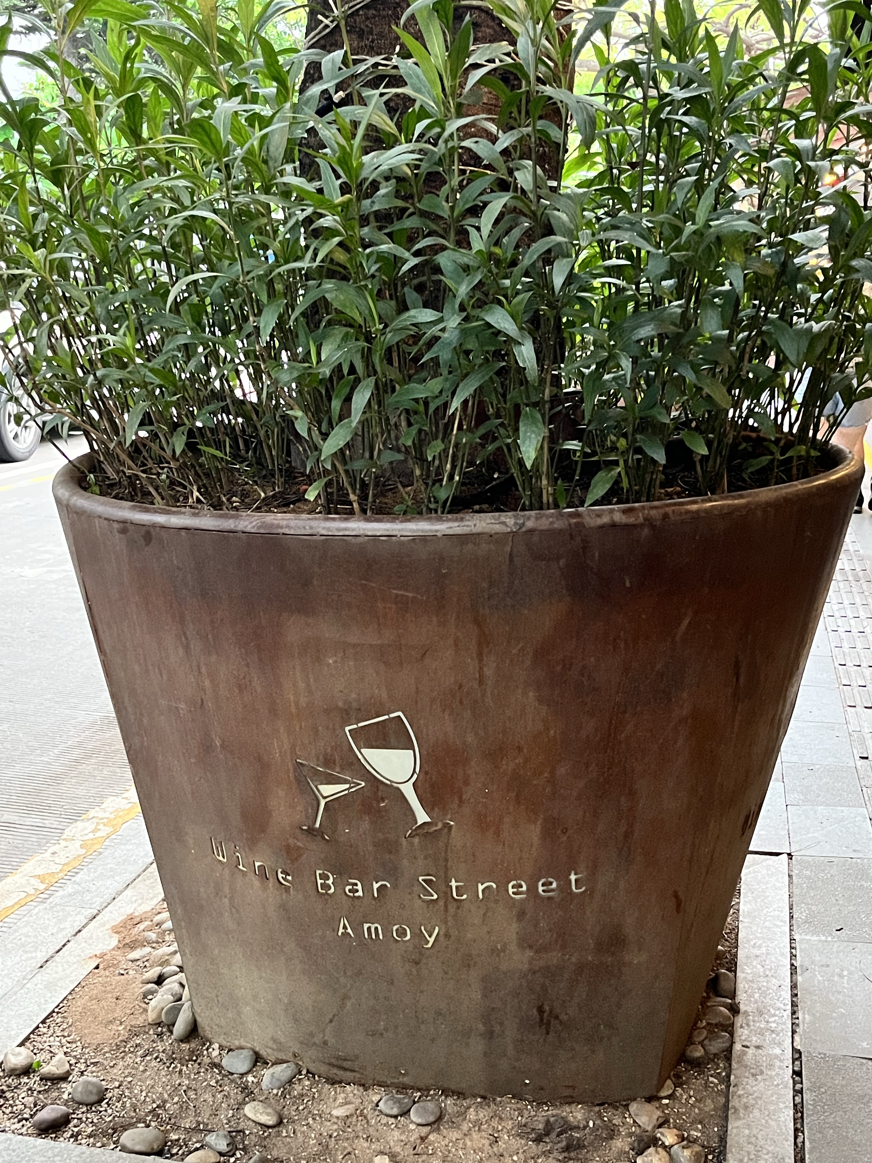 I was very grateful to Martin who had the foresight to just get a driver arranged from the hotel. All of us had been anxious about being escorted away and then to have had to deal with getting a taxi to the hotel might just have broken us all – especially in humid searing heat. Reunited with our friends we went to bar street – recommended by the Italian chef at our hotel. We had a drink at the Londoner and then inveigled the Londoner to let us sit outside the pub and eat in the neighbouring Tapas restaurant, Ay Manuela. That food and wine was superb, so great in-fact, that we ate there twice. The seafood is locally sourced (Xiamen being on the coast) and the iberico pork is imported. The Albariño white wine was paired perfectly and the meal ended with a Vermouth that tasted of Christmas.