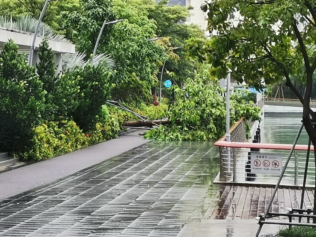 We have now woken up properly and know that Hong Kong has had a lot more damage than us in Shenzhen. Or at the least the part that we are in seems to have suffered minimal damage. At 8:15am the typhoon was downgraded with the metro being able to resume at 8:40am and the airport reopening at 8:30am.