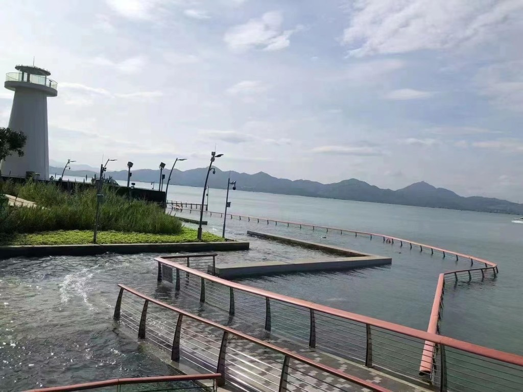 We went to sleep and slept well – that is until just after 4am when the hook holding up my dressing gown on the back of the door fell off and woke Martin up. Completely unrelated to the typhoon. A quick check of the apartment was done, and apart from a leak on one of the windows, everything was intact. I went back to bed and slept. Martin was awake and didn’t get back to sleep. The wind had died down, though there were still ripples on the water.