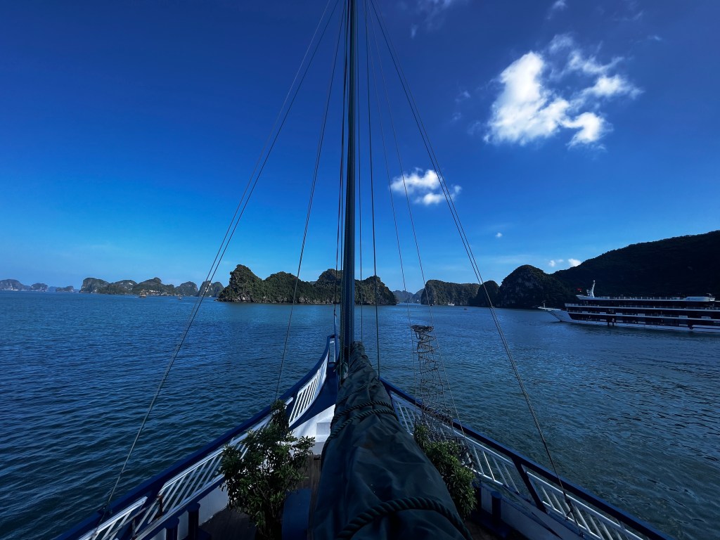 For about a month before our journey to Vietnam the three of us couldn’t decide on the boat in Halong Bay. Two weeks before our trip we finally booked, we knew we wanted two nights and three days on water and Jill wanted to kayak, and we wanted three rooms. The three rooms was a deal breaker for many of the boats that we were looking at but we finally succeeded on a boat that didn’t break the bank. I was vetoed on the boat having a pool as that increased the price substantially.