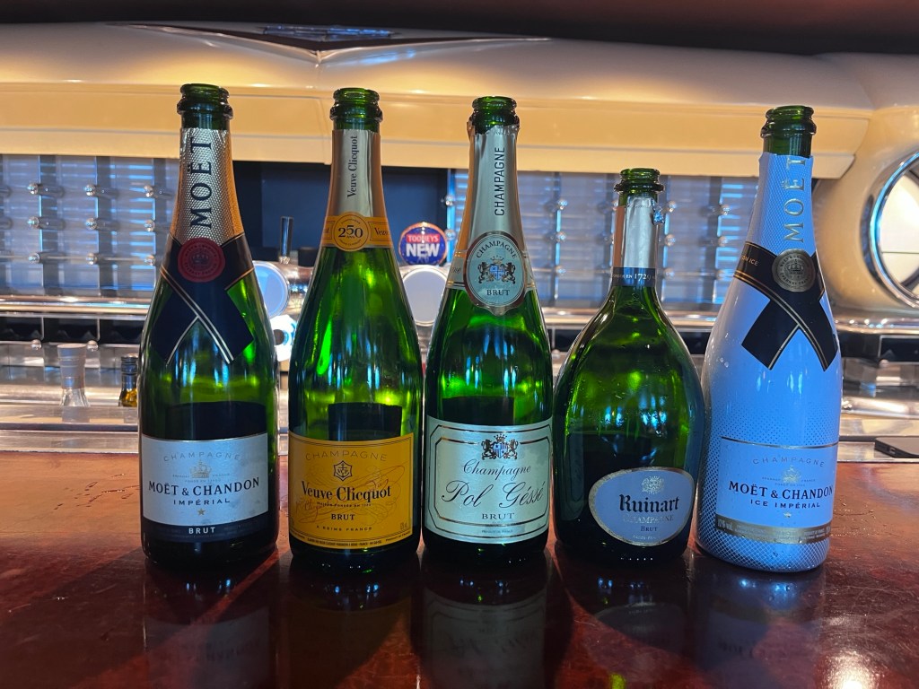 The Moët et Chandon house is truly a global brand and the brand owns many of the Champagne Houses in the Champagne region of France including the Dom Perignon brand. Dom Perignon is actually stored for more than 10 years hence its price! Moët was the champagne of choice for Charles and Diana’s wedding in 1981 which helped its popularity. One of the last champagnes to be tasted was also a Moët and Chandon, but it was my least favourite. Ice Impérial was created specifically to be poured over ice. In a white bottle it is well prepared to be a poolside drink in the summer months but I did not like it.