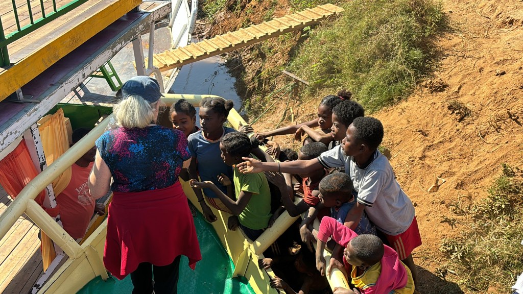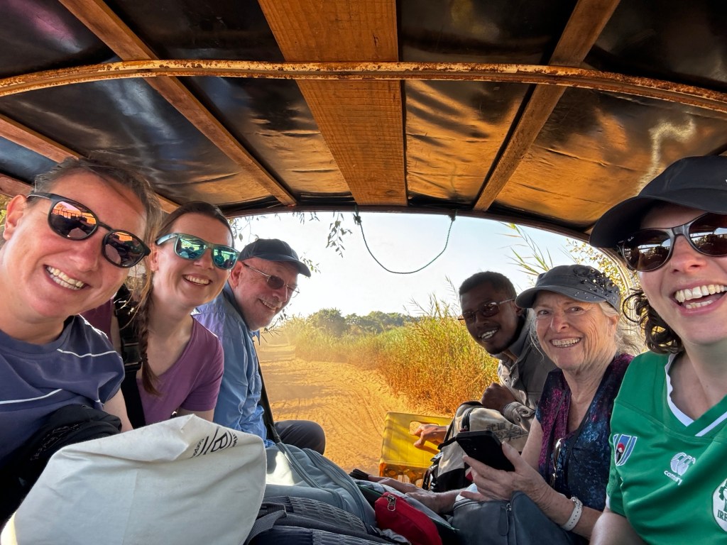We split into two groups and while others played games and sang songs with the children, I went with Lisa, David, Linda, Jen and some of the luggage in a vehicle open to the elements and dust to the riverbank where the boats docked. It was about a 10 minute journey further downstream since the water level by the village wasn’t high enough for the boat to dock.