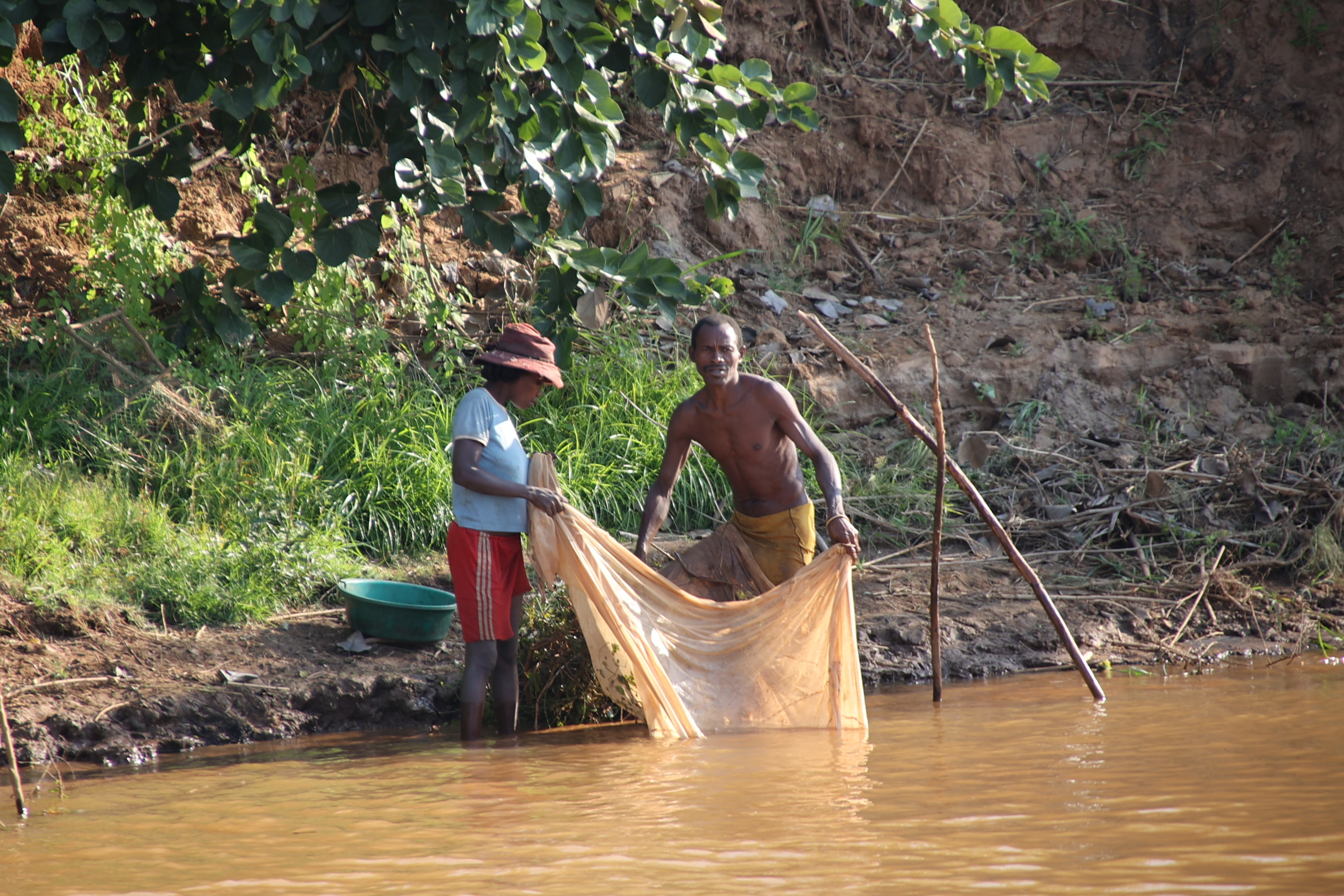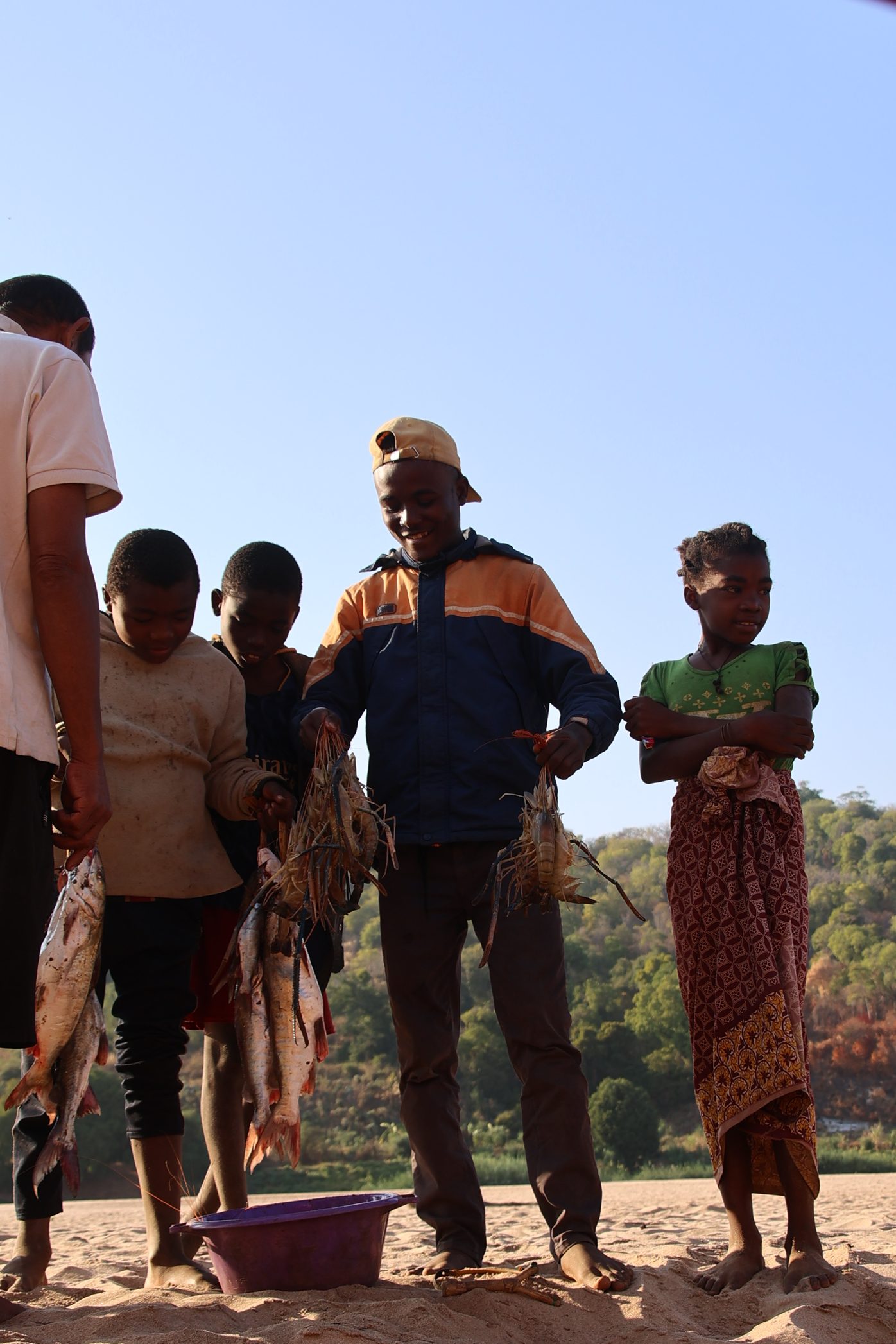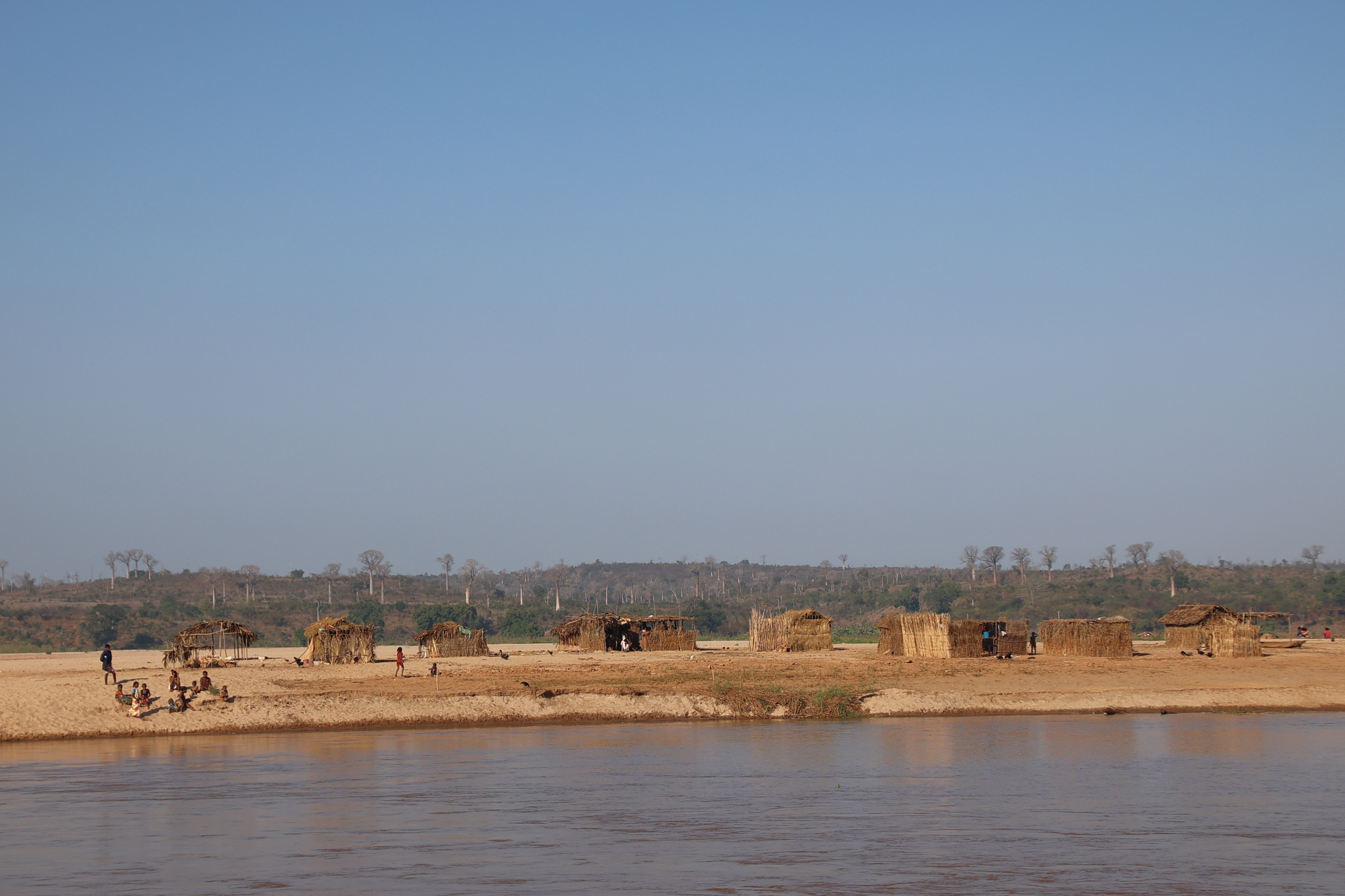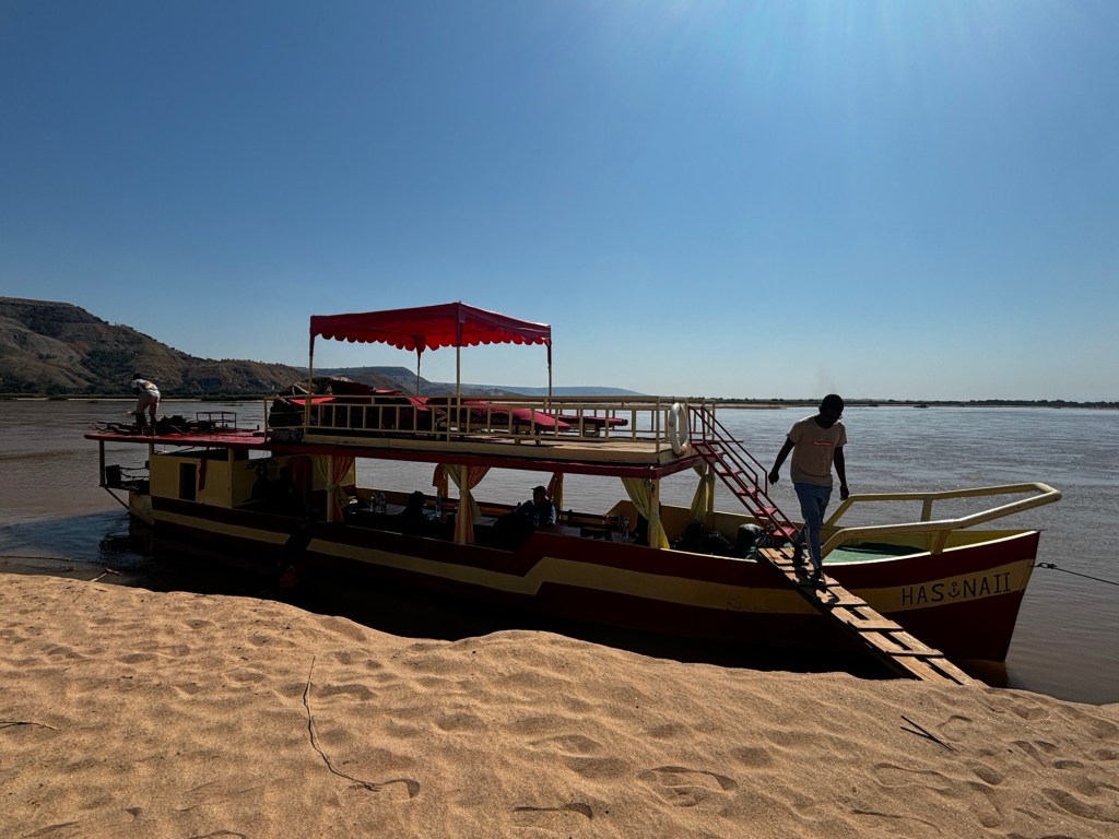 With the boat loaded we set off. Just like how we zigzagged on the road avoiding the potholes, we meandered down the Tsiribihina River avoiding sandbanks beneath the river surface. We had bushy bushy stops on sandbanks, we saw chameleons, Nile crocodiles, zebu and barn owls over the course of the three days. I even spotted a croc without it being pointed out! Also dotted along the riverbank we saw settlements and a number of people going about their daily lives of rowing boats, fishing and washing. Most of the children we saw would wave and and were genuinely happy when we waved back. Some members of the group even danced after we saw a group of children dance on the riverbank.
