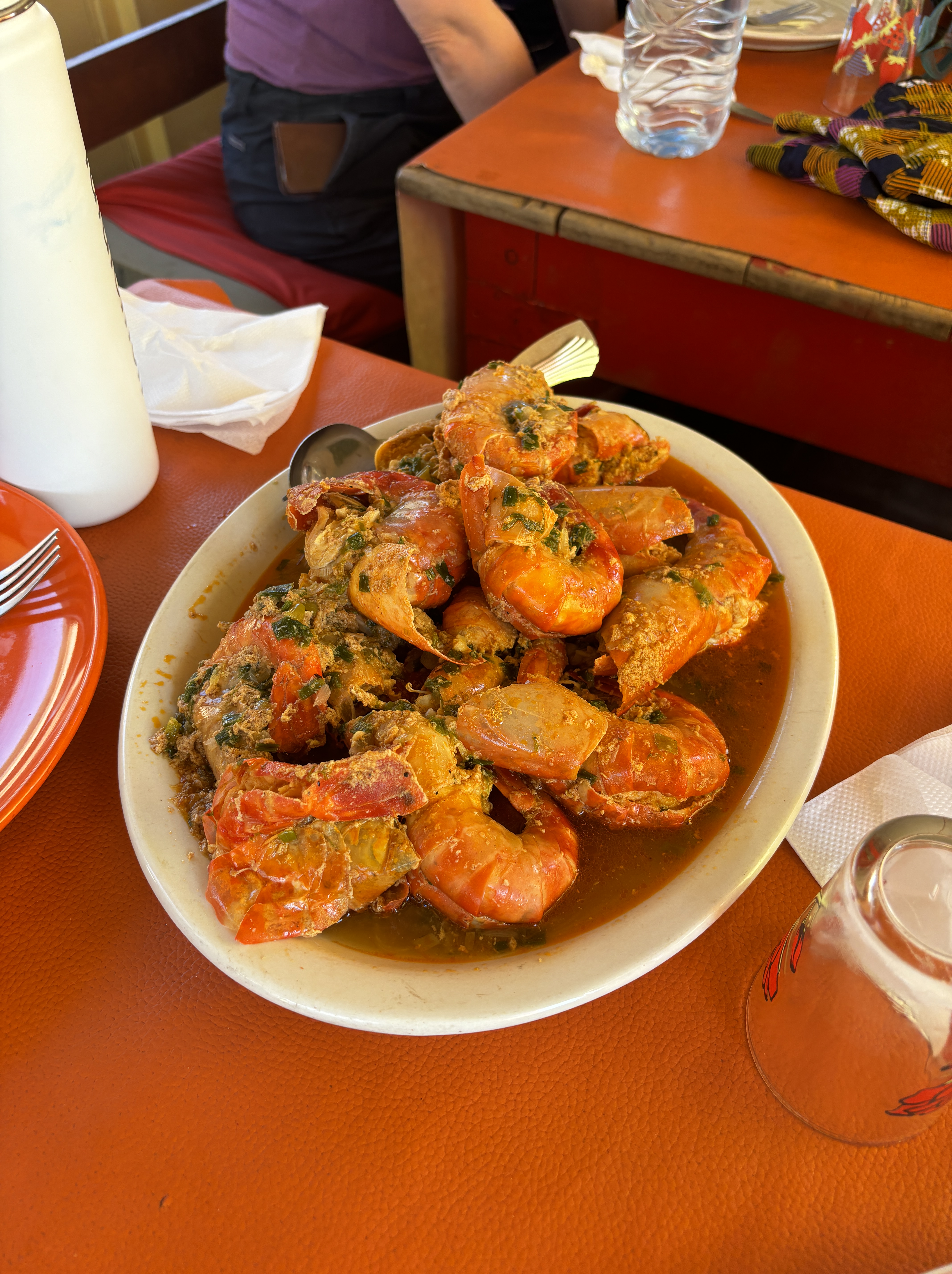 On day two as we were about to leave our makeshift camp, some visitors came up to the boat. The young people had been fishing and had come to our boat to sell their wares. The chef inspected the fish and bought gambas (large prawns) which were served to us for lunch and were absolutely delicious. Thankfully I had my appetite back!