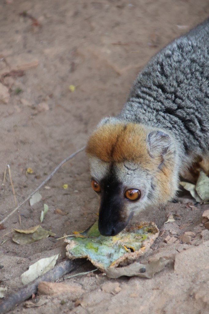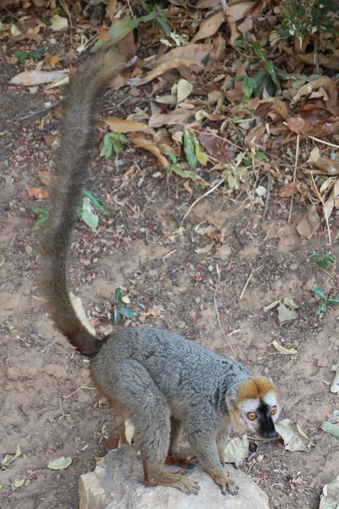 The chameleon kept his tongue in his head but we were just enthralled with seeing it in the wild, and as we left the chameleon we were shushed by the people in front of us. We moved on to be greeted by the promised lemurs. We were sceptical how they just turned up and we figured that possibly the lemurs had been lured down by food or they knew the sound of tourists and the possibility of food. Anyway, regardless of how they appeared, they appeared and we spent a lot of time with them and got super close. I was even able to go to the boat, get my camera and return.